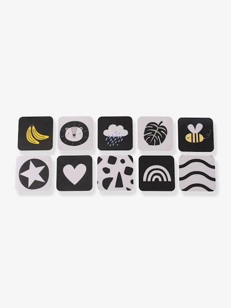 – Phase 1 – 0m+ : les cartes en noir et blanc permettent au bĂ©bĂ© de se concentrer sur une image et d’être stimulĂ©. Encourage bĂ©bĂ© Ă jouer sur le cĂ´tĂ©, sur le ventre et Ă tourner la tĂŞte.