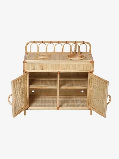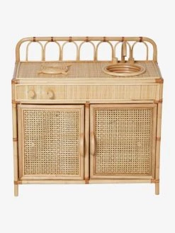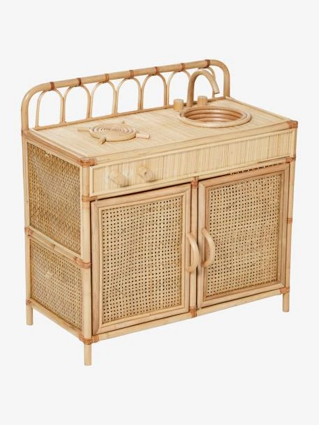Vous craquez pour la tendance rotin et vous souhaitez faire un enfant heureux ? Alors notre cuisinette est juste parfaite ! Elle se compose sur le dessus d’un Ă©vier avec 2 boutons (eau chaude et eau froide) qui tournent au niveau du robinet, d’une plaque de cuisson et de deux boutons qui tournent pour “allumer” la plaque. En dessous, les enfants pourront ranger tous leurs ustensiles dans les grands placards avec Ă©tagère. IdĂ©ale pour crĂ©er un espace cuisinette 5 Ă©toiles Ă votre enfant, notre jolie cuisinette en rotin est un Ă©lĂ©ment dĂ©co Ă part entière dans votre intĂ©rieur.