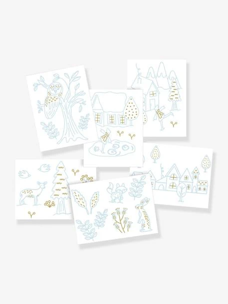 Dans ce nouveau coffret, les enfants dĂ©couvrent deux super feutres pour vitre: un dorĂ© et un bleu clair. Ils y retrouveront aussi 6 modèles et 2 frises Ă coller Ă l’arrière de la fenĂŞtre et Ă dĂ©calquer, magnifiquement illustrĂ©s par Mel Armstrong.