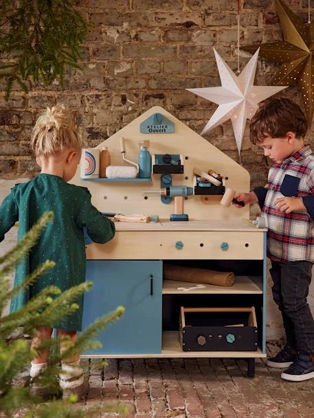 Scier, visser, meuler… le bricolage n’aura plus aucun secret pour votre enfant grâce à notre grand établi de bricolage ! Un véritable meuble avec placard et étagères de rangement, où il pourra utiliser tous ses outils en s’inventant de belles histoires. Cet établi est livré avec de nombreux accessoires pour des heures d’imitation grandeur nature.