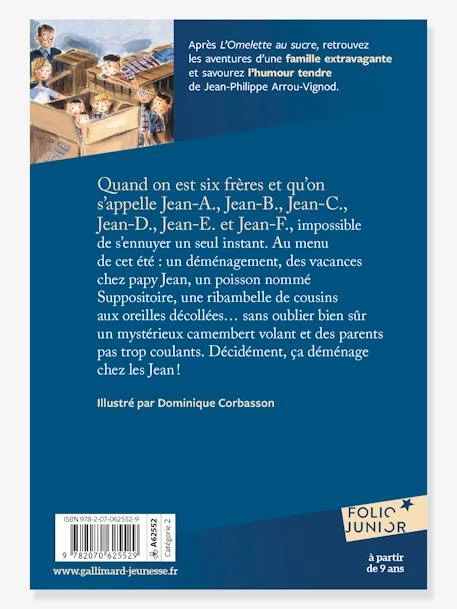Quand on a six frères et qu’on s’appelle Jean-A., Jean-B., Jean-C., Jean-D., Jean-E. et Jean-F., impossible de s’ennuyer un seul instant. Au menu de cet Ă©tĂ© : un dĂ©mĂ©nagement, des vacances chez Papy Jean, un poisson nommĂ© Suppositoire, une ribambelle de cousins aux oreilles dĂ©colĂ©es… sans oublier bien sĂ»r un mystĂ©rieux camembert volant et des parents pas trop coulants.