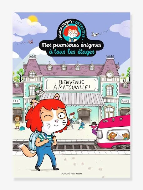 Bienvenue à Matouville, la ville où Agata Crispy, détective, mène ses nombreuses enquêtes au milieu d’une foule de personnages animaliers : Chacune des 8 énigmes proposées est indépendante, et se situe dans un décor particulier : gare, école, banque, laboratoire, cirque, musée… Mais chaque volume de cette nouvelle collection aura un thème ou un fil rouge.Le lecteur suit Agata Crispy dans la résolution de ses enquêtes : pour cela il doit chercher des détails dans l’image, et répondre à six questions selon une logique linéaire.Chaque enquête est présentée sur 4 pages :- La première présente l’énigme. – Deux grands rabats permettent de présenter le décor dans sa version extérieure, décor qu’on retrouve dans sa version intérieure quand on soulève les rabats… Pas besoin de plier les pages comme dans la version d’origine ! – Sous les rabats, on découvre les témoins et les suspects ainsi que les questions auxquelles il faut répondre pour avancer dans l’enquête. L’humour de Paul Martin fait mouche avec ses jeux de mots délicieux sur les noms de personnages et avec ses univers riches en imagination…Les illustrations tendres et rigolotes sont toutes réalisées par la même illustratrice : Camille Roy.