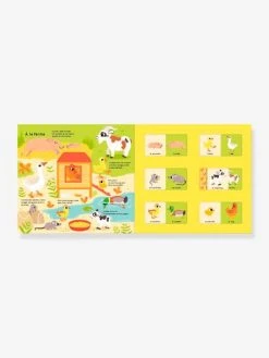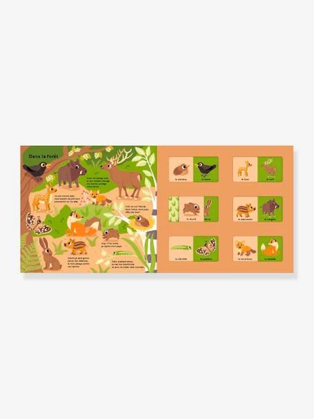 Je suis encore petit, mais bientôt, de jolis bois pousseront sur ma tête.Grrr ! Coiffé de sa belle crinière, mon papa rugit !Ma maman fabrique du bon lait.Qui suis-je ? As-tu deviné de qui je suis le bébé ?En observant les grandes scènes illustrées et grâce aux indices glissés dans le texte, l’enfant pourra jouer à recomposer les familles d’animaux, avant de vérifier la réponse en faisant coulisser les volets.Un livre-jeu qui mêle observation et déduction, pour une première approche documentaire.
