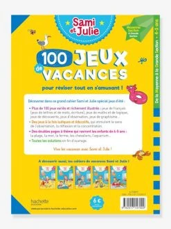 Retrouve Sami et Julie dans ce grand cahier spécial jeux d’été qui fera le bonheur des petits vacanciers : Plus de 100 jeux variés et richement illustrés : jeux de lettres/mots, jeux de maths et de logique, jeux des différences, labyrinthes, etc. et de grandes scènes “cherche et trouve”. Des jeux à la fois ludiques et éducatifs, qui stimulent le sens de l’observation, la réflexion et la concentration, et qui font réviser tout en s’amusant.