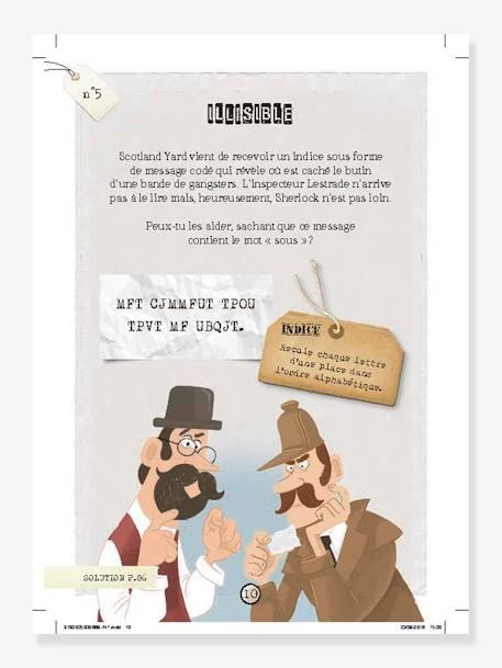 Déduis, calcule, décode, devine… Bref, fais marcher tes méninges ! En compagnie du célèbre détective Sherlock Holmes et de toute sa bande. 80 énigmes à résoudre pour stimuler ton sens logique tout en t’amusant ! Devinettes, charades, rébus, jeux de calcul, messages codés, grilles et jeux de mots, jeux d’observation… Avec toutes les solutions à la fin du livre.