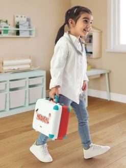 Dans cette mallette mĂ©dicale, votre enfant dispose de tous les accessoires nĂ©cessaires pour sauver des vies ! Il retrouve le matĂ©riel classique de tout docteur qui se respecte : stĂ©thoscope, thermomètre et seringue, mĂ©dicaments et carnet de santĂ©. Chaque accessoire a son propre rĂ´le Ă jouer dans les interventions qu’il s’invente. Après chaque acte hĂ©roĂŻque, il range tout son matĂ©riel comme un vrai professionnel et repart avec sa mallette Ă la main ! Plus qu’un simple jeu d’imitation, cette mallette de docteur permet Ă©galement Ă votre enfant de dĂ©dramatiser ses visites chez le mĂ©decin.