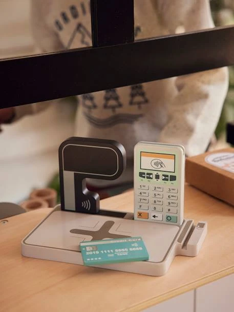 - Aliments : 2 tranches de tomates, concombre, champignons, crevettes, 4 cartes de menus, des stickers, des ustensiles de cuisines (spatule + couteau) 2 sets de couverts (fourchette, couteau)Â une caisse avec cadran Ă craie + un appareil CB et une carte bancaire, sel, poivre