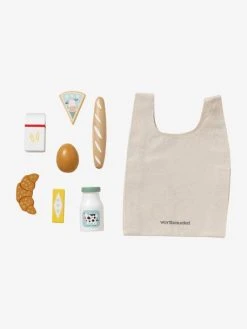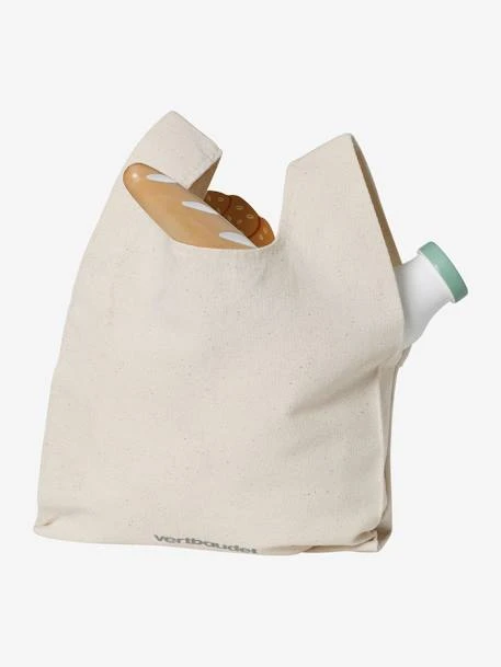 Hmmm ça sent le retour du marché ! Un sac de provision en tissu avec à l’intérieur quelques délices tous frais ! Croissant, baguette, beurre… les ingrédients parfaits pour compléter leur cuisinette !