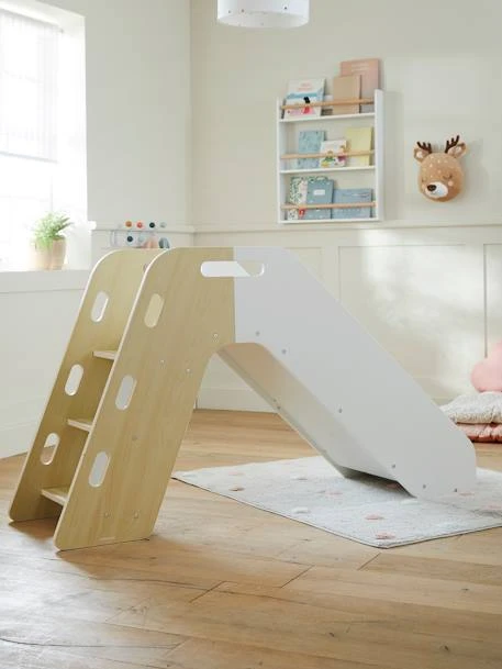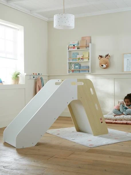 Et zioup ! Une petite glissade pour bébé sur notre toboggan en bois ! En plus d’être joli, il est aussi ingénieux ! Il possède des poignées tout le long de l’escalier, pour aider les petites mains à s’agripper. Placez l’arrivée du toboggan dans une piscine à balles… bonheur assuré !